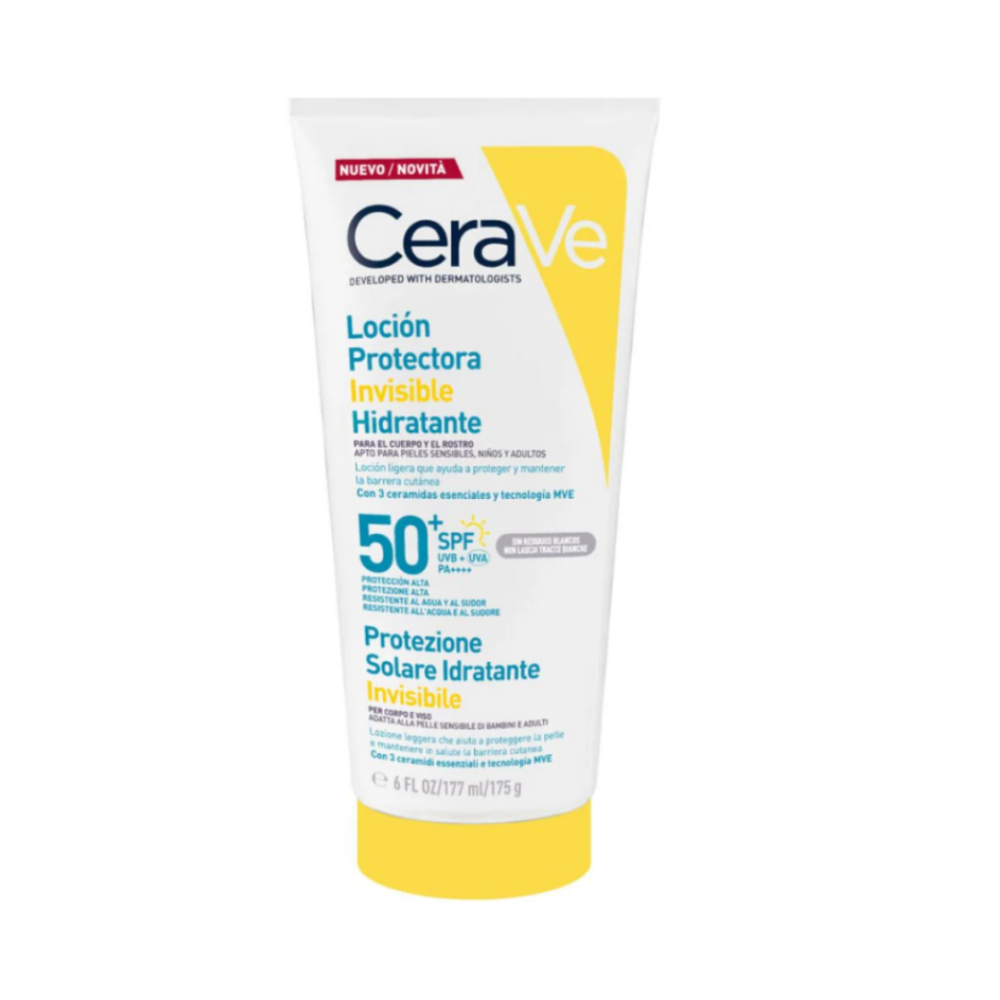 CeraVe Fluido Invisible SPF 50+ es un protector solar facial diseñado para ofrecer muy alta protección frente a los rayos UVA y UVB con una textura ultraligera que se absorbe rápidamente y deja un acabado invisible en la piel. Es ideal para el uso diario, incluso bajo el maquillaje.