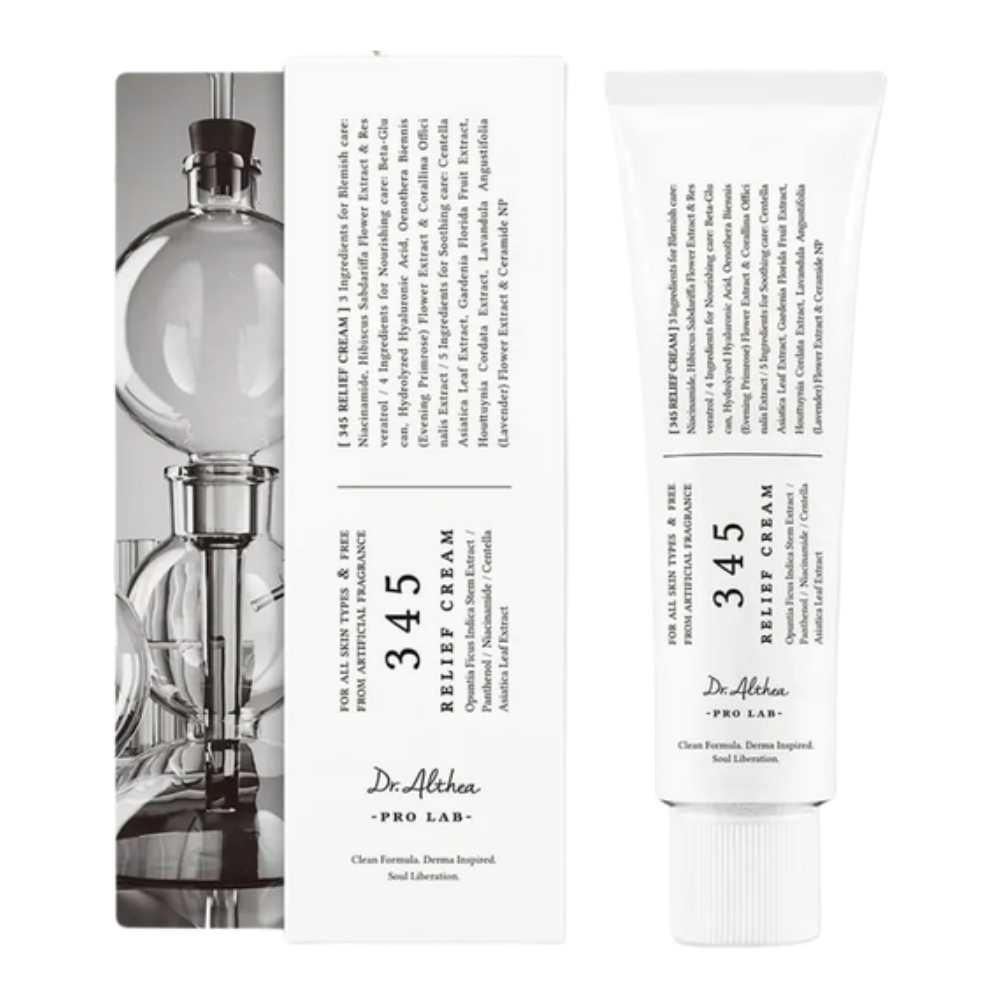 Dr. Althea 345 Relief Cream es una crema facial diaria hidratante y calmante, especialmente formulada para pieles sensibles, deshidratadas o irritadas. Su textura ligera pero nutritiva ayuda a restaurar la barrera cutánea, calmar rojeces y mantener la piel suave, protegida y confortable durante todo el día.