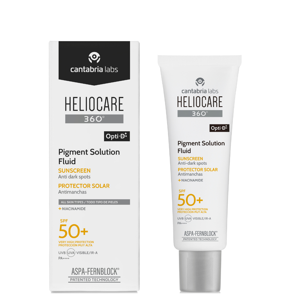 Protección muy alta SPF frente a UVA, UVB, IR y luz visible gracias a Heliocare Pigment.
