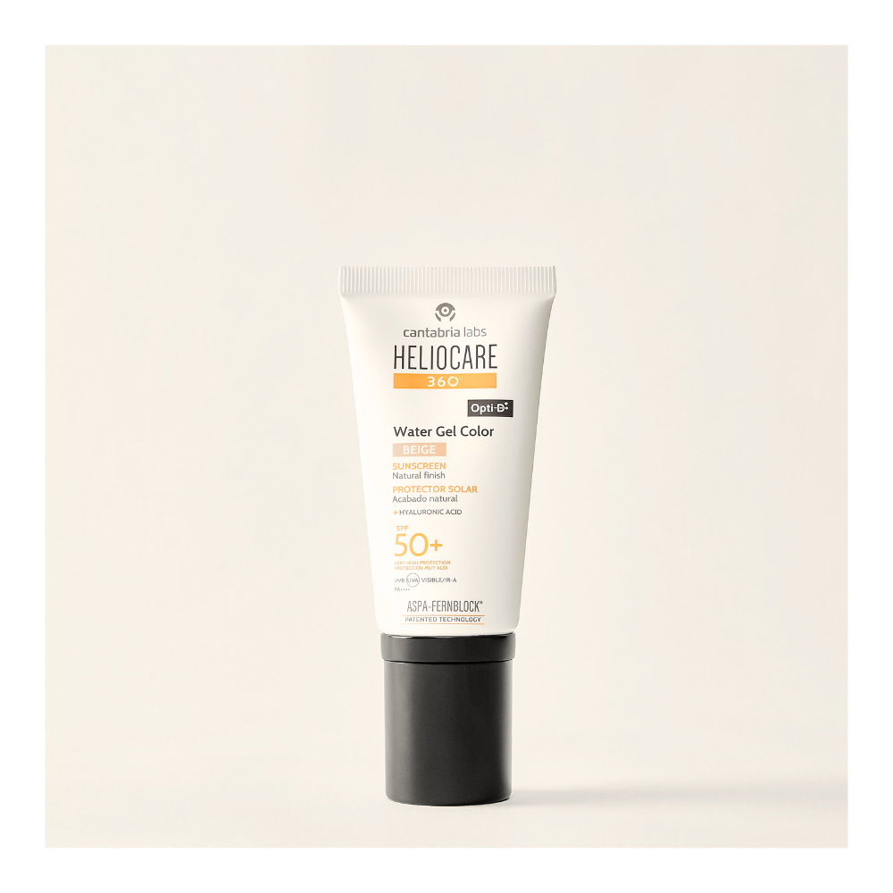 Heliocare 360º Color Water Gel SPF50+ Beige es un fotoprotector facial con color que combina protección solar avanzada y efecto maquillaje ligero, aportando un acabado natural de “buena cara” al instante.