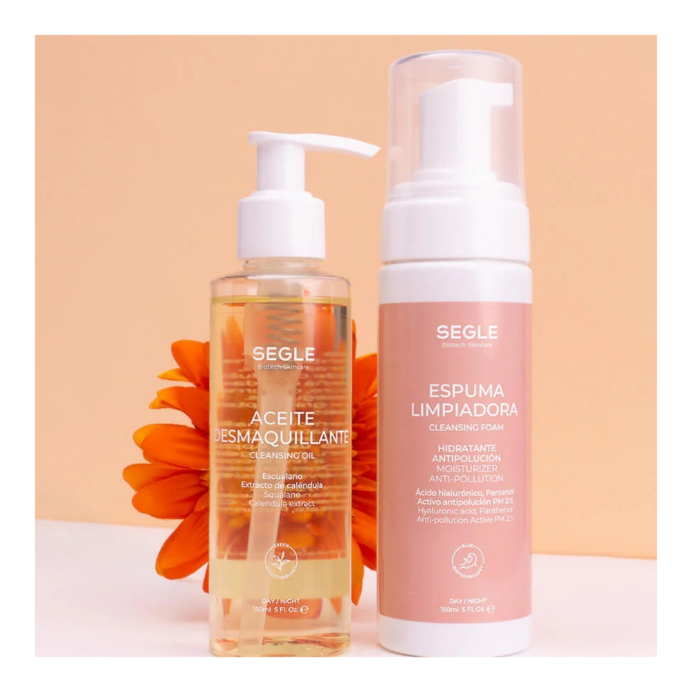 Este pack combina aceite desmaquillante + espuma limpiadora para realizar una doble limpieza completa que elimina maquillaje, protector solar, grasa, polución y sudor sin alterar la barrera cutánea.