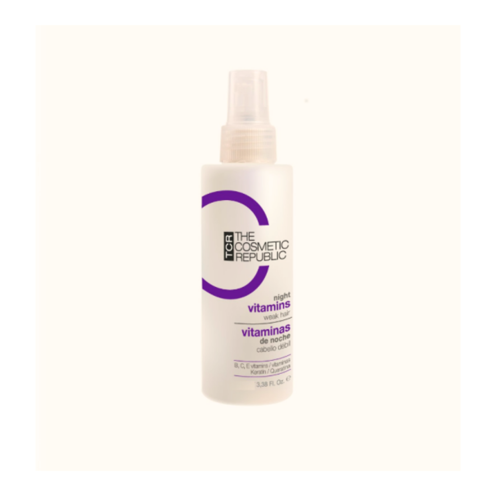 Vitaminas de Noche Spray – The Cosmetic Republic Tratamiento capilar nocturno en spray que actúa durante el descanso para fortalecer, reparar y estimular el crecimiento del cabello desde la raíz. Su fórmula ligera y sin aclarado mejora la calidad del cabello sin engrasar ni apelmazar. Como farmacéutica experta en cuidado capilar, lo recomiendo especialmente en casos de cabello debilitado, caída o falta de densidad, ya que favorece un entorno óptimo en el cuero cabelludo para un crecimiento más fuerte y saludable. Beneficios